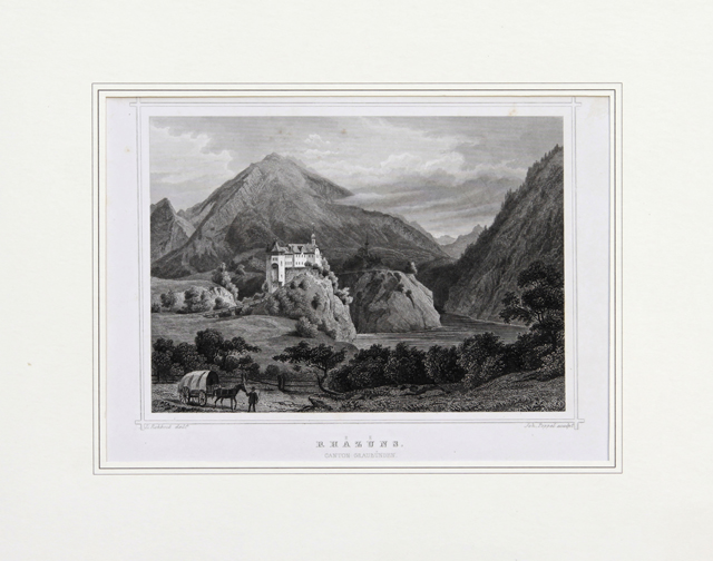 Razén, Imboden, Rhin, Forteresse, peintures des 16e et 17e siècles, paysage alluvial